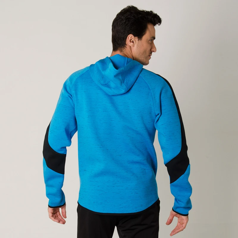 Jaqueta em tecido stretch, que mescla algodão e poliéster, conta com a tecnologia Drycell, que proporciona uma secagem mais rápida do suor e permite que sua pele permaneça fresca por mais tempo, garantindo um treino confortável.