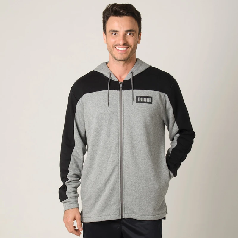 JAQUETA PUMA REBEL BLOCK FZ HOODY MASCULINA - Cinza
