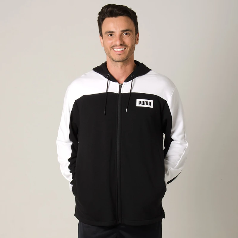 JAQUETA PUMA REBEL BLOCK FZ HOODY MASCULINA - Preto