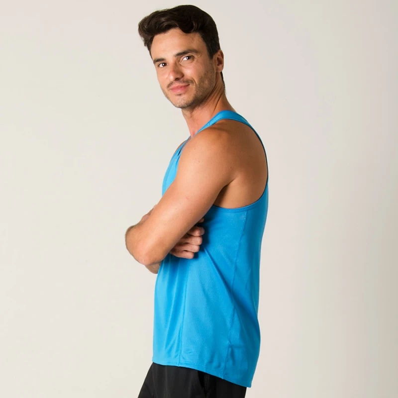 Possui painéis em mesh para maior respirabilidade, bainha desenhada e cavas amplas que permitem amplitude de movimento natural.