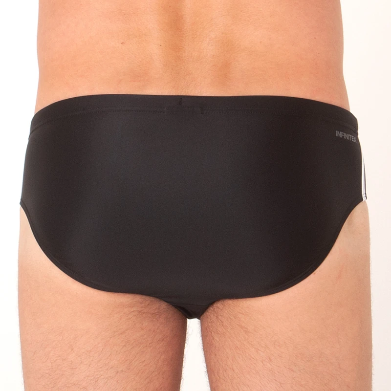 Tecido resistente ao cloro Infinitex Fitness Eco; esta sunga foi produzida com fios regenerados ECONYL a partir de redes de pesca recicladas e outros materiais de nylon descartados.
