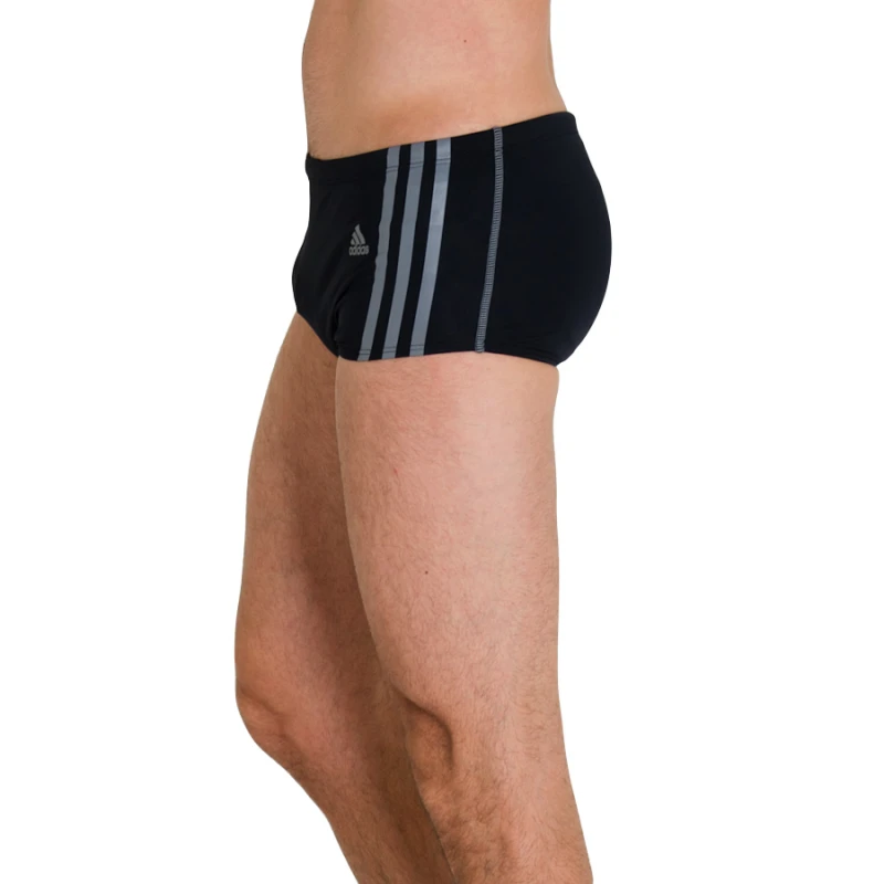 A sunga possui cós elástico com cordão para melhor ajuste, listras laterais e logo adidas bordado.