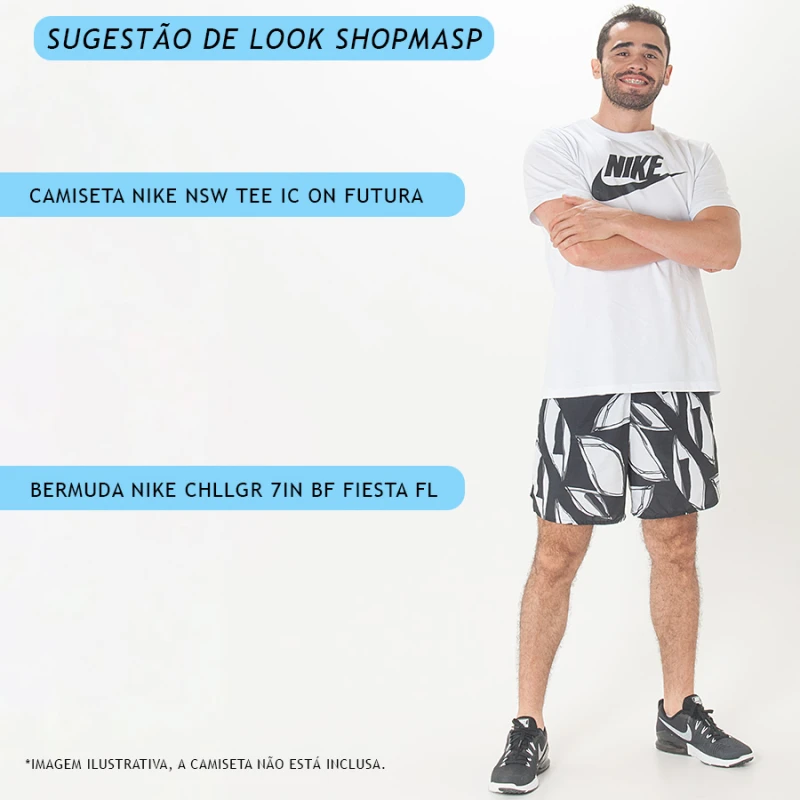 Medidas do modelo Carlos Alexandre que veste a Bermuda Nike Challenger Fiesta Floral Masculina na cor: Preto/Branco no tamanho: G