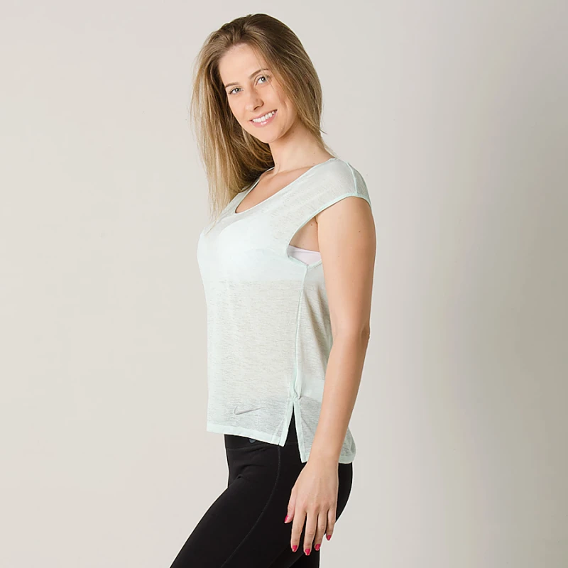 A Camiseta Nike Breathe Top Cool Feminina é feita com tecido super leve, que absorve o suor para ajudar a manter você seca, fresca e confortável do começo ao fim do treino.