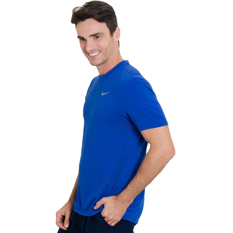 CAMISETA NIKE DRI FIT CONTOUR SS MASCULINA - Azul/prata