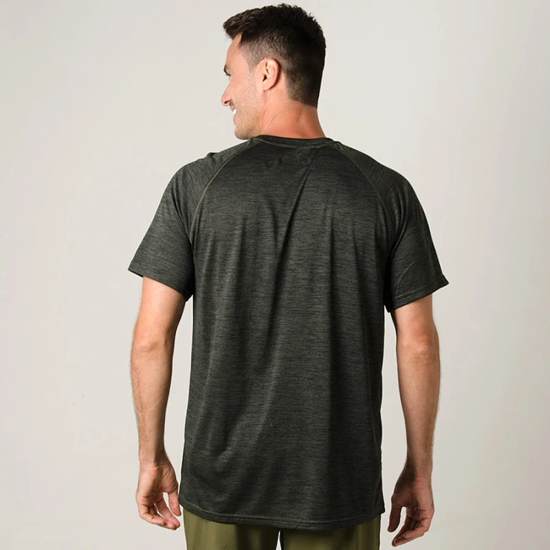 A peça oferece tecnologia Heatgear, que mantém o suor longe do corpo, fornecendo maior ventilação e secagem rápida.
