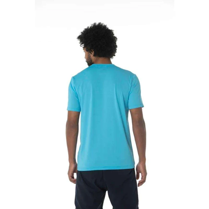 Camiseta feita em malha de poliéster com elastano texturizada.