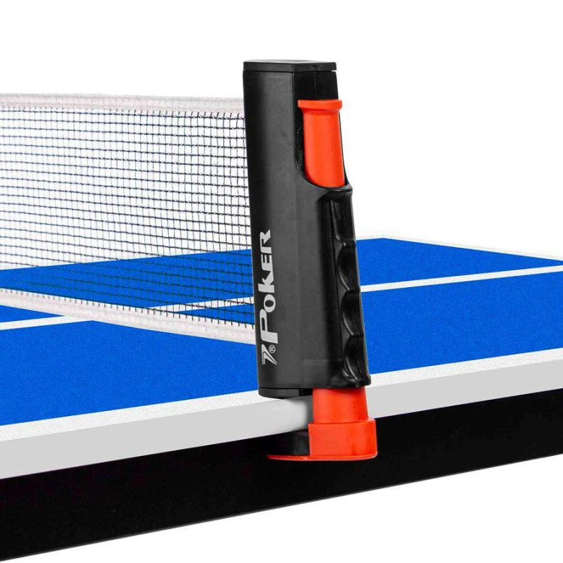 As 2 raquetes de tênis de mesa são em madeira, e com os dois lados em borracha lisa e espuma, o suporte retrátil vem com rede interna que facilita a montagem em segundos, basta apertar o suporte contra a mesa que libera a rede para o comprimento desejável. Permitindo que a diversão comece em segundos.