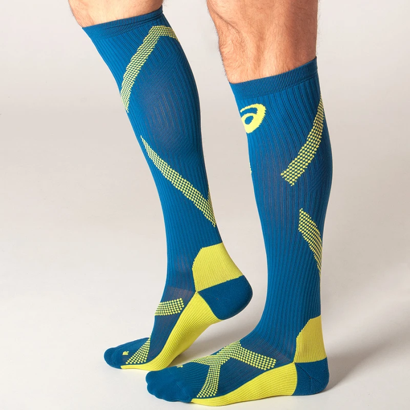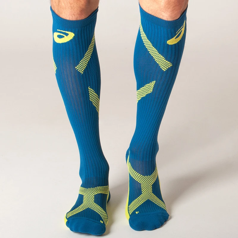 MEIA ASICS HIGH COMPRESSÃO - Azul/amarelo
