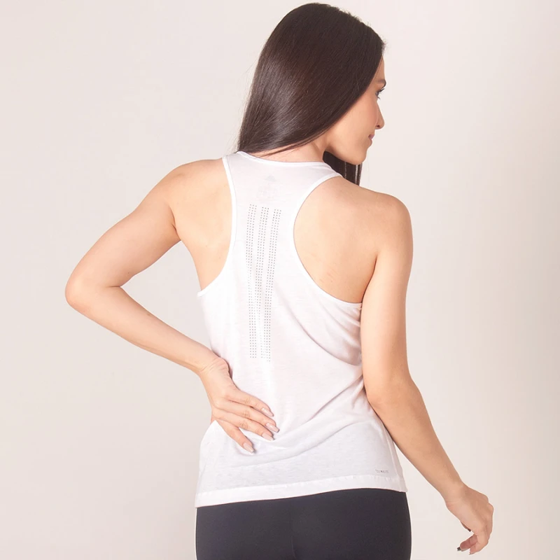 Com as Três Listras vazadas, o design das costas estilo nadador dá maior liberdade de movimento aos seus braços durante seus exercícios.