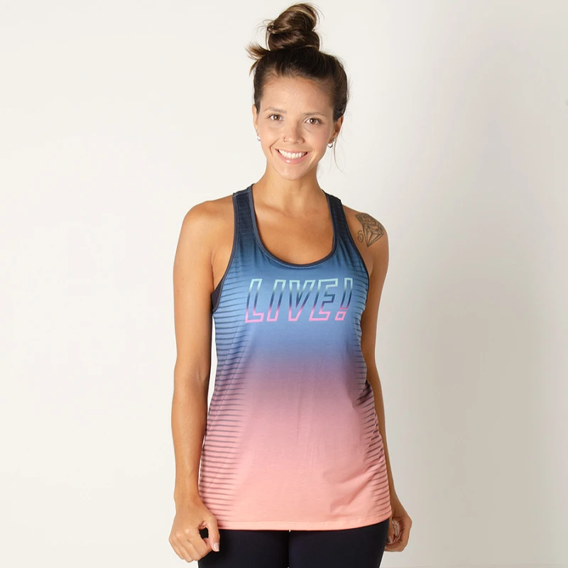 Live! Personalizado em efeito degradê dip-dye dando identidade à peça.