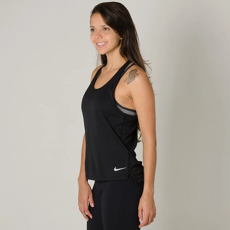 Com design costas nadador que libera a sua amplitude de movimentos, a Regata Nike Miler Racer Feminina possui painéis em mesh e tecido que absorve o suor para desempenho respirável quando você precisa correr aqueles quilômetros extras.