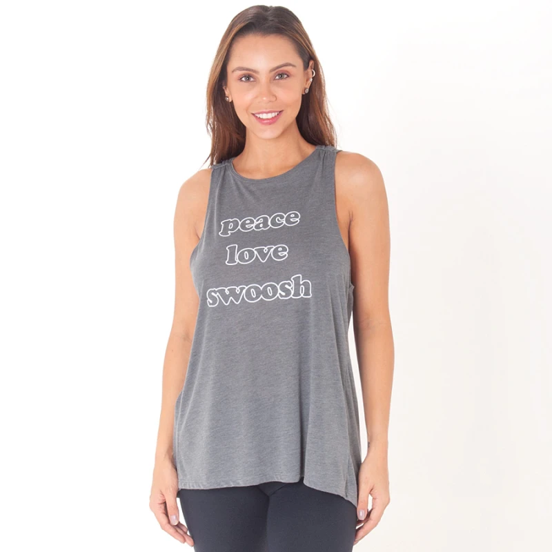 Medidas da modelo Giseli Rossi que veste a Regata Nike Yoga Feminina na cor: Grafite no tamanho: P