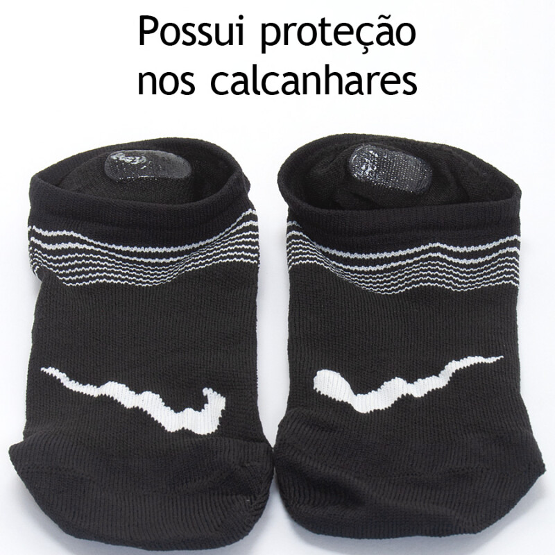 Bolsas de silicone no calcanhar ajudam a manter a meia no lugar.