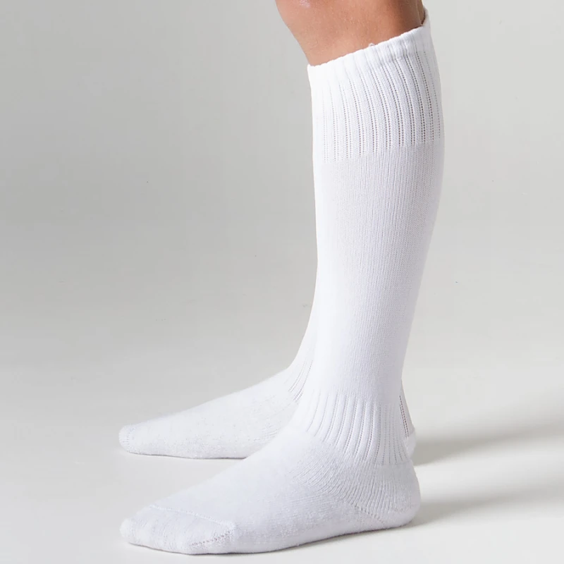 Confeccionado em poliéster, algodão, elastano, poliamida e elastodieno, o meião é macio e confortável, possui pé atoalhado e punho reforçado.