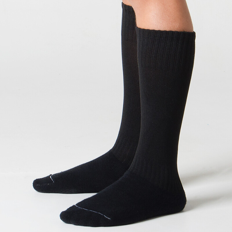 Confeccionado em poliéster, algodão, elastano, poliamida e elastodieno, o meião é macio e confortável, possui pé atoalhado e punho reforçado.