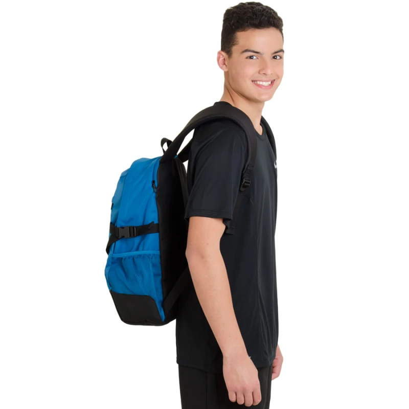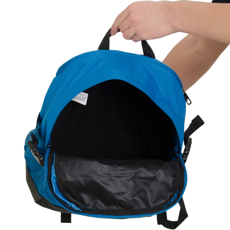 Confeccionada em poliéster, possui compartimento principal amplo, divisória lateral em tela de tramas abertas e compartimento traseiro.