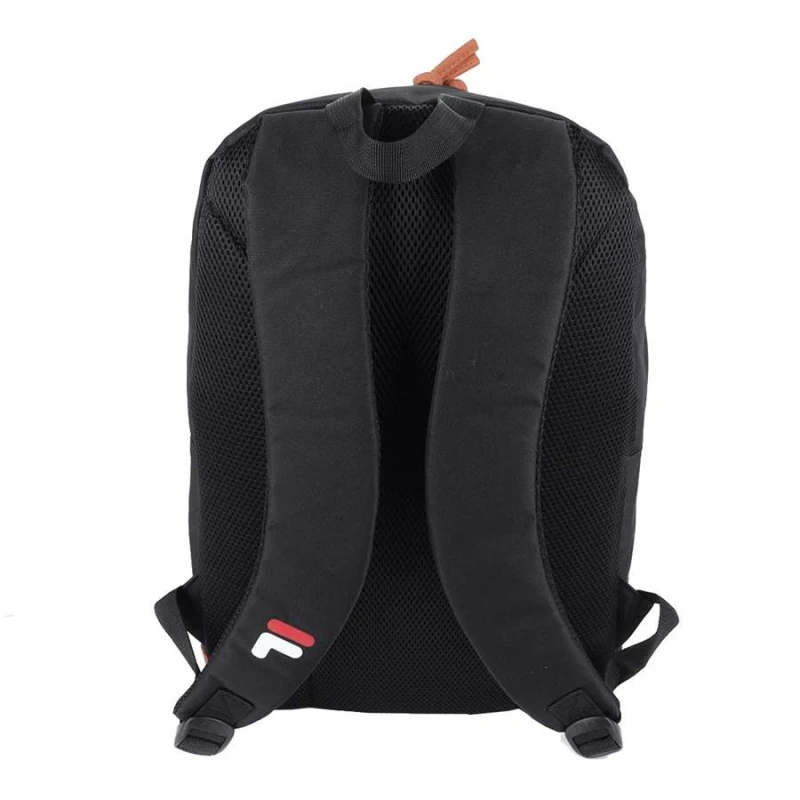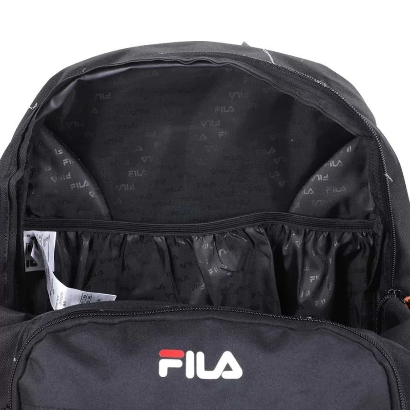 Logo Fila Letter bicolor bordado no bolso frontal e logo Fila Floating bicolor estampado na alça.