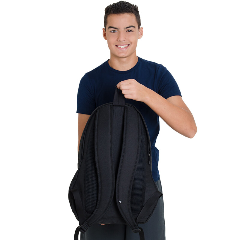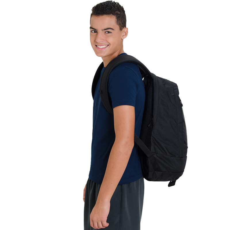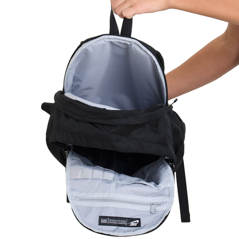 Essa mochila Nike possui dois compartimentos principais, sendo um deles acolchoado, próprio para transportar notebook de até 15 polegadas>.