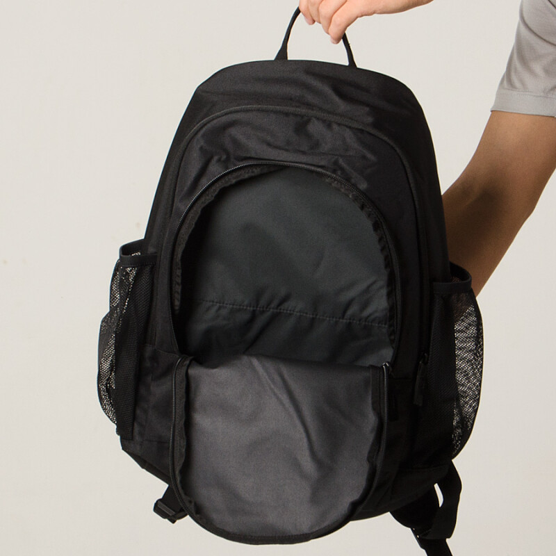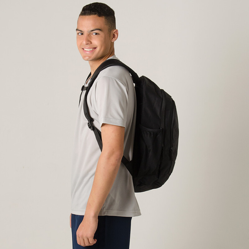 Bolsos laterais em mesh para armazenamento prático de pequenos itens.