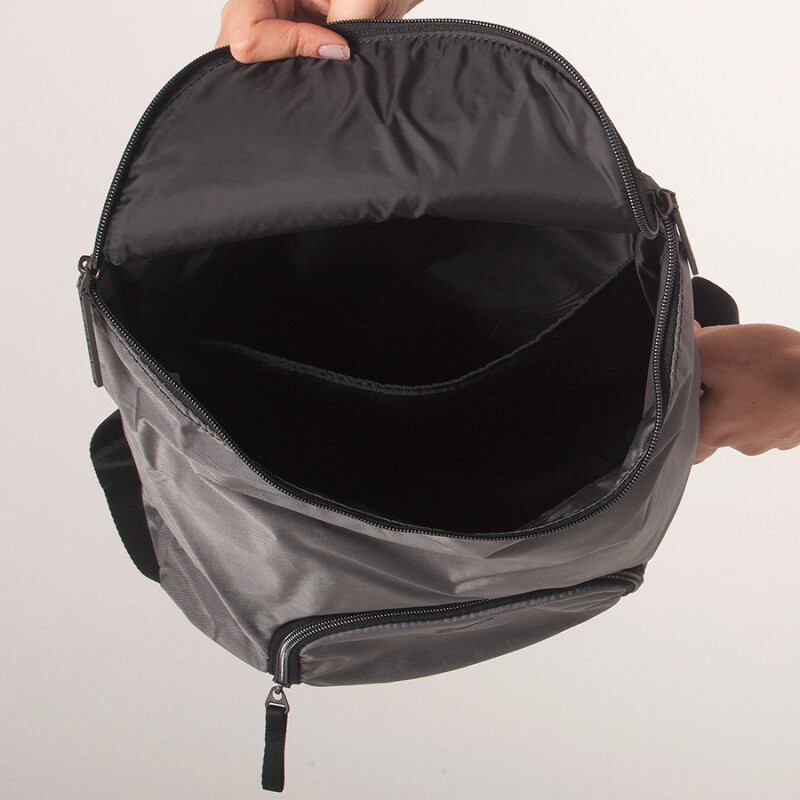 Compartimento principal espaçoso com fechamento em zíper e abertura ampla para facilitar o acesso.