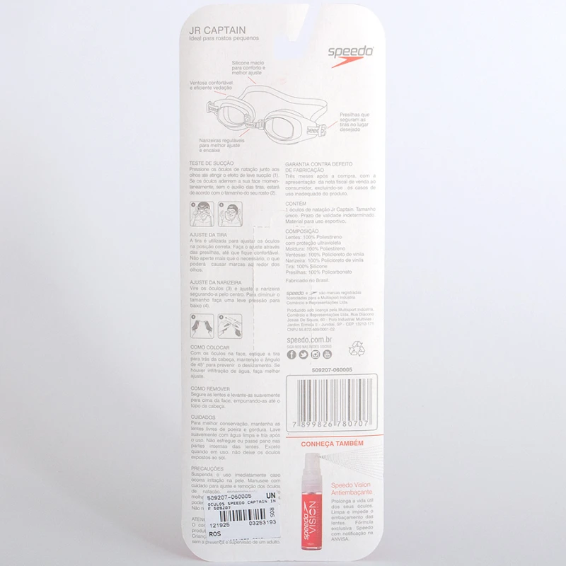 O Óculos Speedo Captain Infantil é excelente para a natação infantil, possui lentes em policarbonato com proteção ultravioleta, conta com tira em silicone, desenho hidrodinâmico, ideal para ser usado no lazer ou durante o processo de aprendizado.