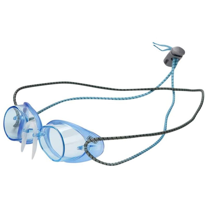 Tira dupla “bungee”, em borracha revestida com poliamida, ideal para nadadores avançados e profissionais e preferência de atletas de alta performance 2 modelos de narizeira: silicone e barbante com PVC flexível