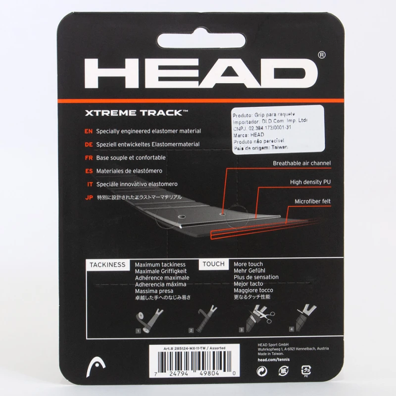 O Overgrip Head Xtreme Track oferece mais aderência em sua pegada, proporcionando uma batida firme, segura e precisa durante as partidas de Tênis.