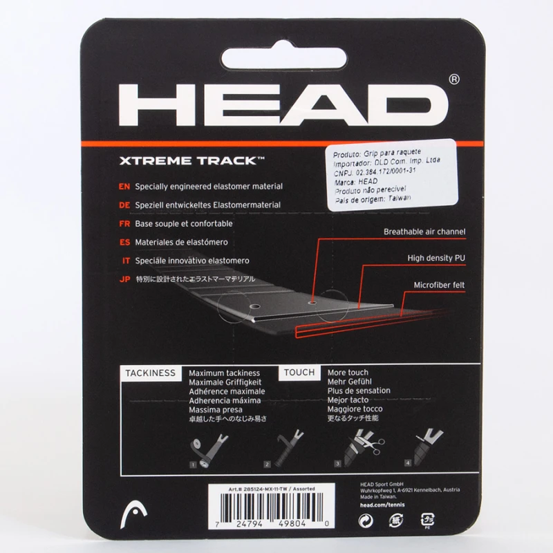 O Overgrip Head Xtreme Track oferece mais aderência em sua pegada, proporcionando uma batida firme, segura e precisa durante as partidas de Tênis.