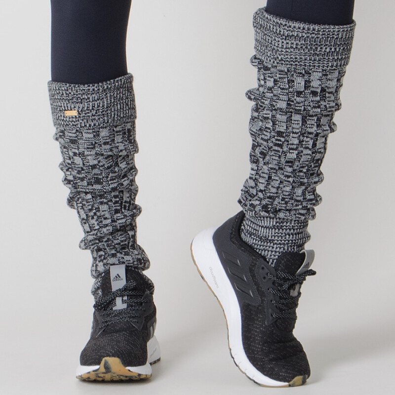 Medidas da modelo Jaqueline que usa a Polaina Live Dancer na cor: Cinza/Preto
