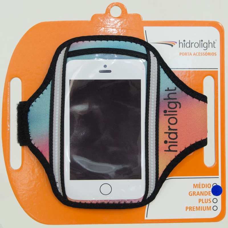 Prático e versátil possui uma faixa regulável em velcro que facilita o ajuste do produto no braço.