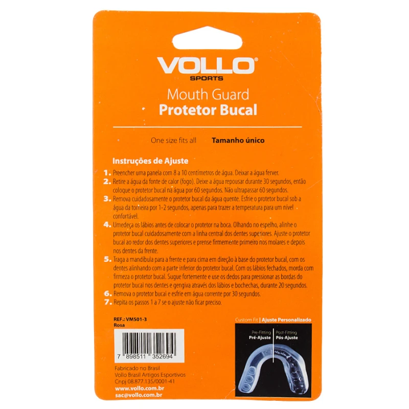 Indicado para atletas de alto nível em esporte de combate, o Protetor Bucal Vollo é produzido em EVA, possui design anatômico, é moldável e ajustável ao contorno dos mais variados dentes.