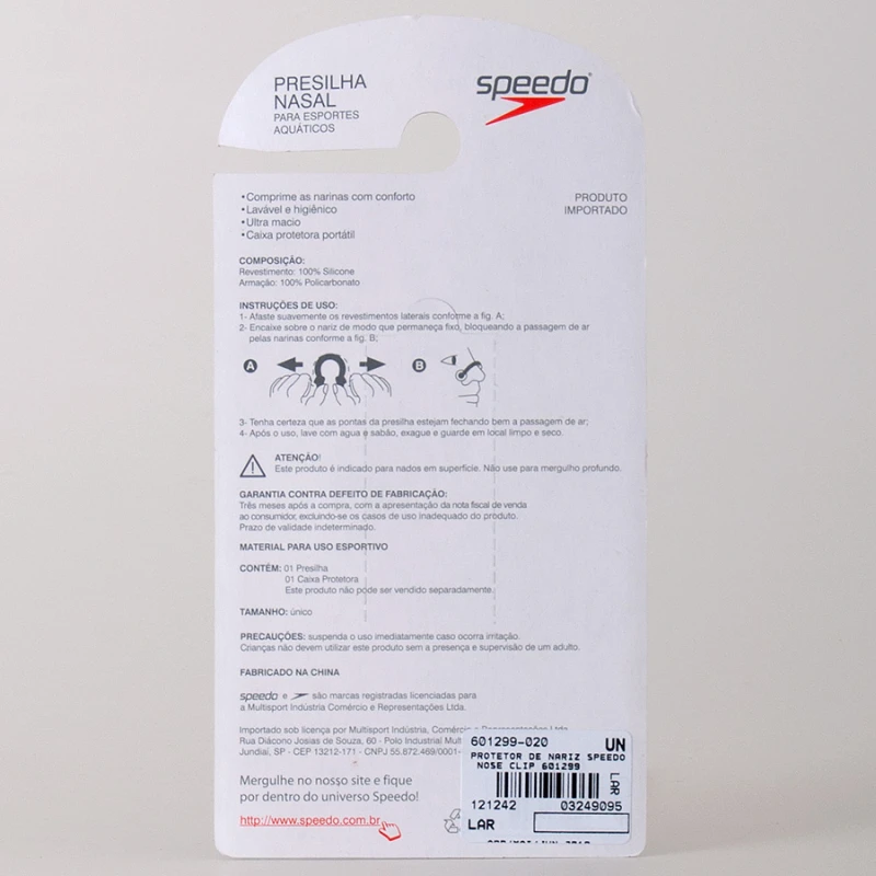 O Protetor Speedo Nose Clip é macio, lavável e higiênico.