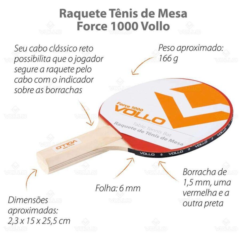 A Raquete Vollo Tênis de Mesa Force 1000 foi especialmente desenvolvida para jogadores iniciantes.