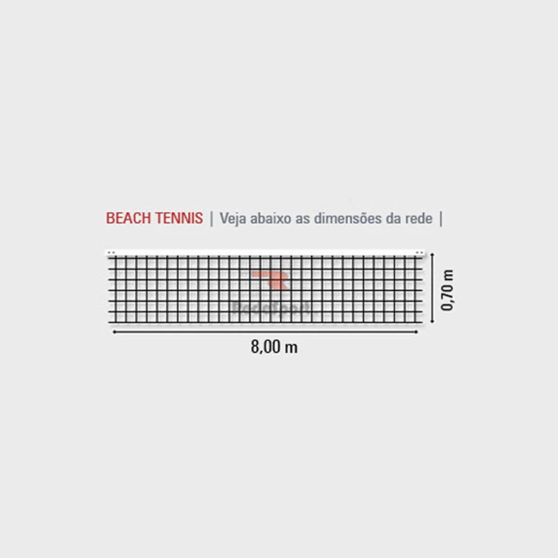 A rede possui tratamento Anti-UV para maior proteção da ação do tempo, e medidas oficiais dentro das normas da Confederação Brasileira de BEACH TENNIS (CBBT).