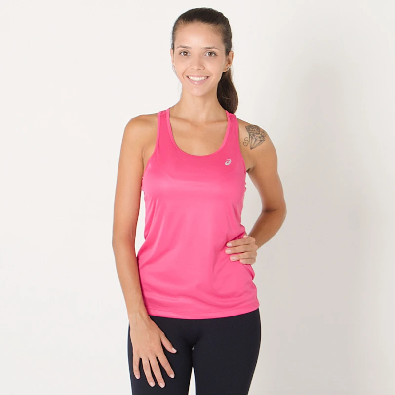 Medidas da modelo Tayse que veste a Regata Asics Basic Tank Feminina na cor: Pink no tamanho: P