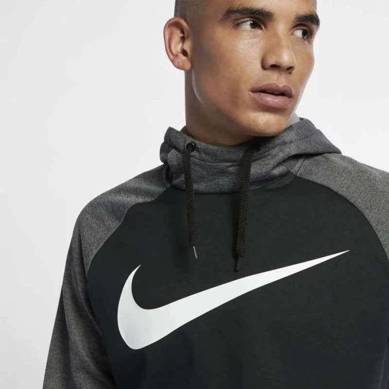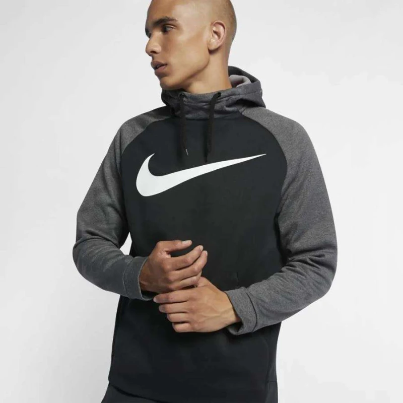 O Blusão de Moletom Nike Therma Swoosh possui tecido térmico, que absorve o suor.
