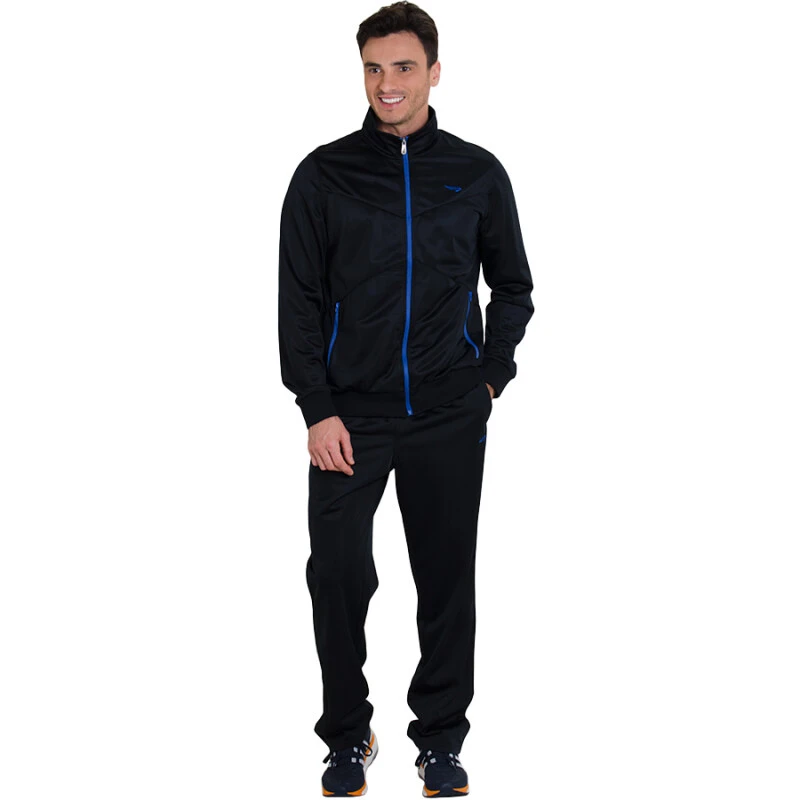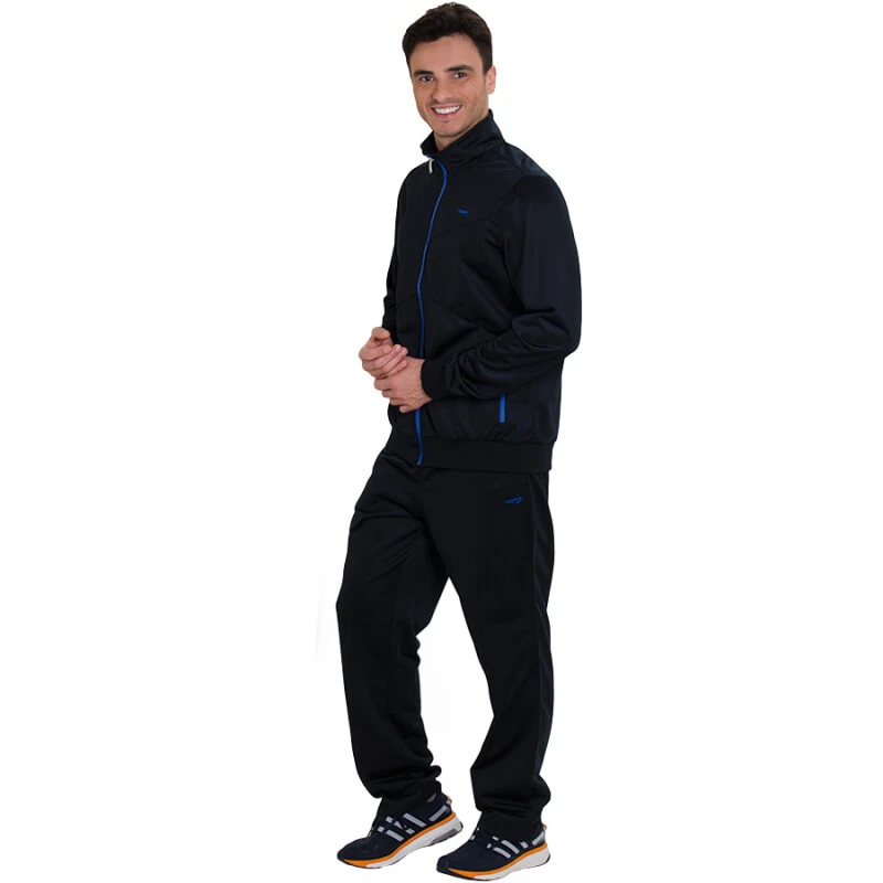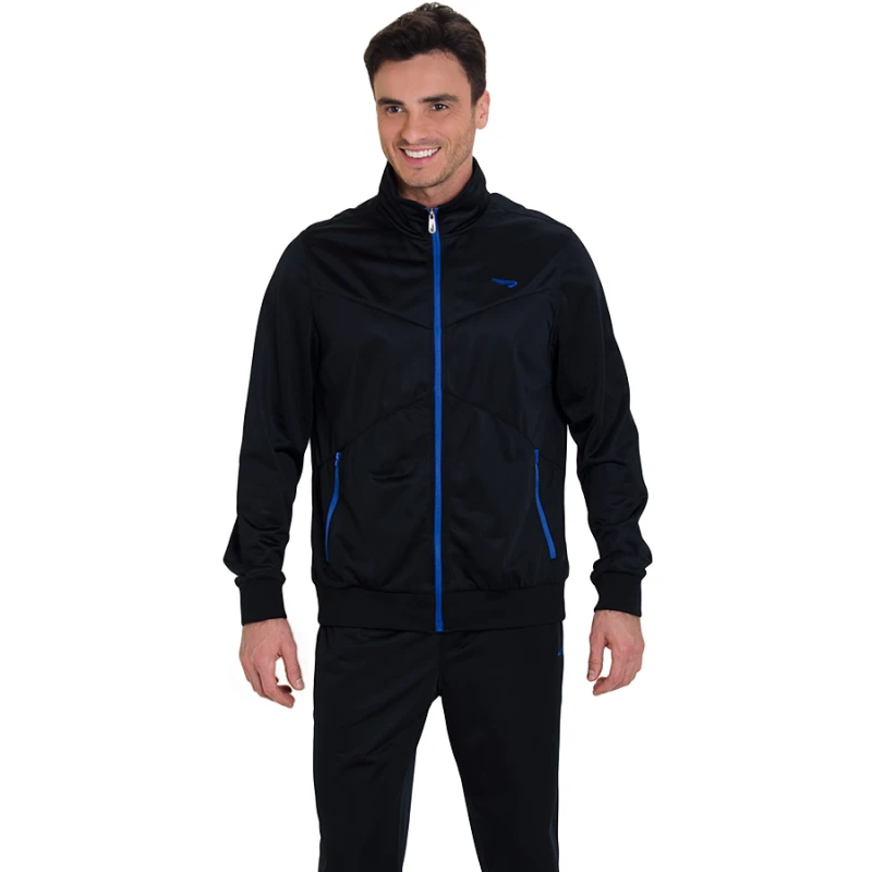 Confeccionado em poliéster, a jaqueta possui gola alta, fechamento e bolsos em zíper, a calça conta com bolsos laterais, cordão interno de ajuste e elástico no cós.