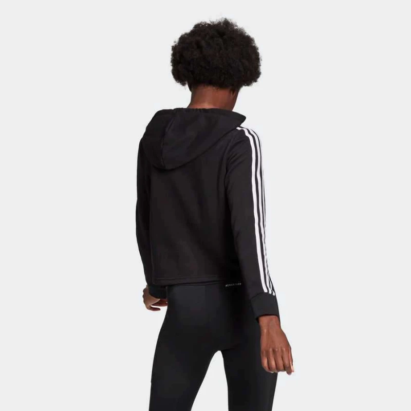 BLUSAO ADIDAS MOLETOM CAPUZ ESSENTIALS STRIPES FEMININO - Preto/branco