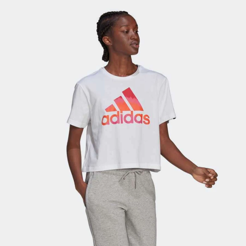 Adicione um toque do estilo tie-dye ao seu guarda-roupa com esta camiseta cropped adidas, feita em parceria com a FARM Rio.