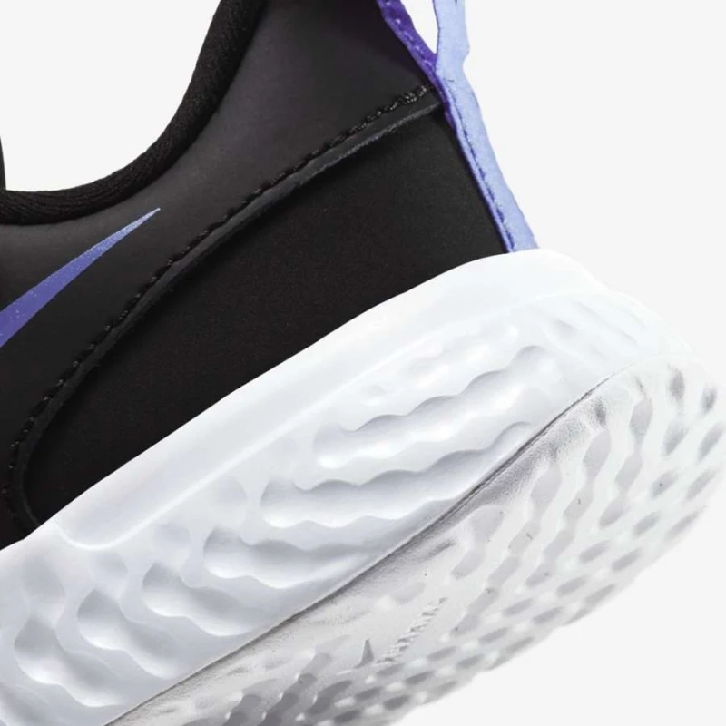 O Tênis Nike Revolution 5 Glitter GPV Infantil tem um design resistente com amortecimento de espuma macia para conforto inovador.