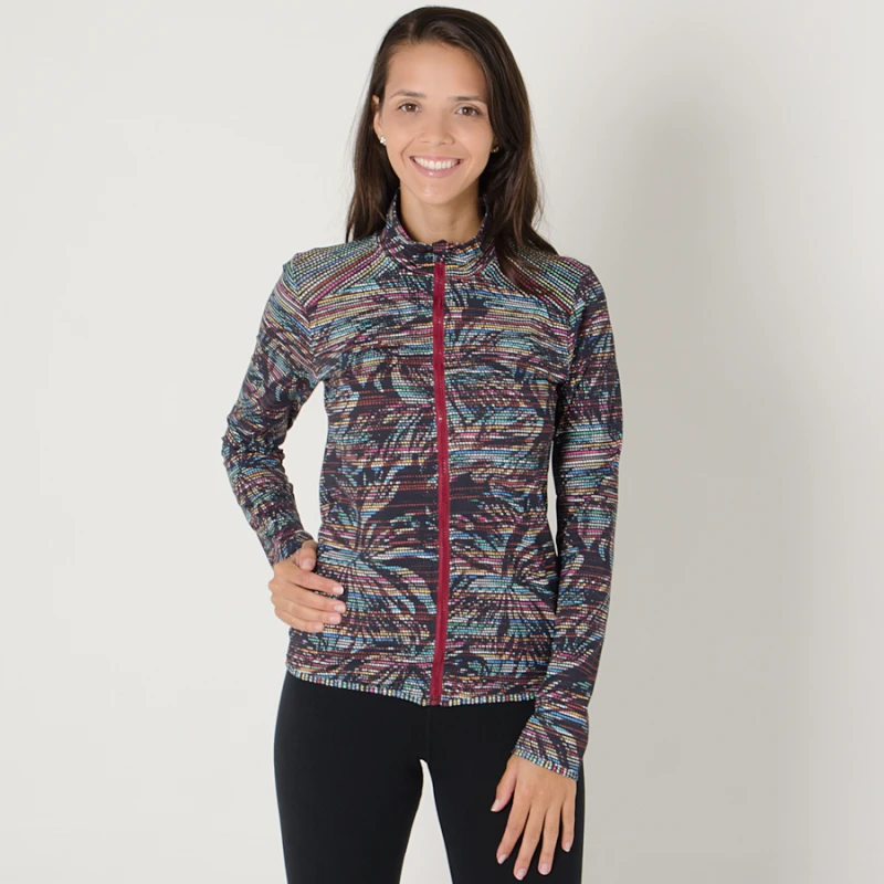 Confeccionada com 79% poliamida e 21% elastano com proteção UPF50+ vem coberta por uma arte tropical de folhagem, resultando em um visual de destaque.