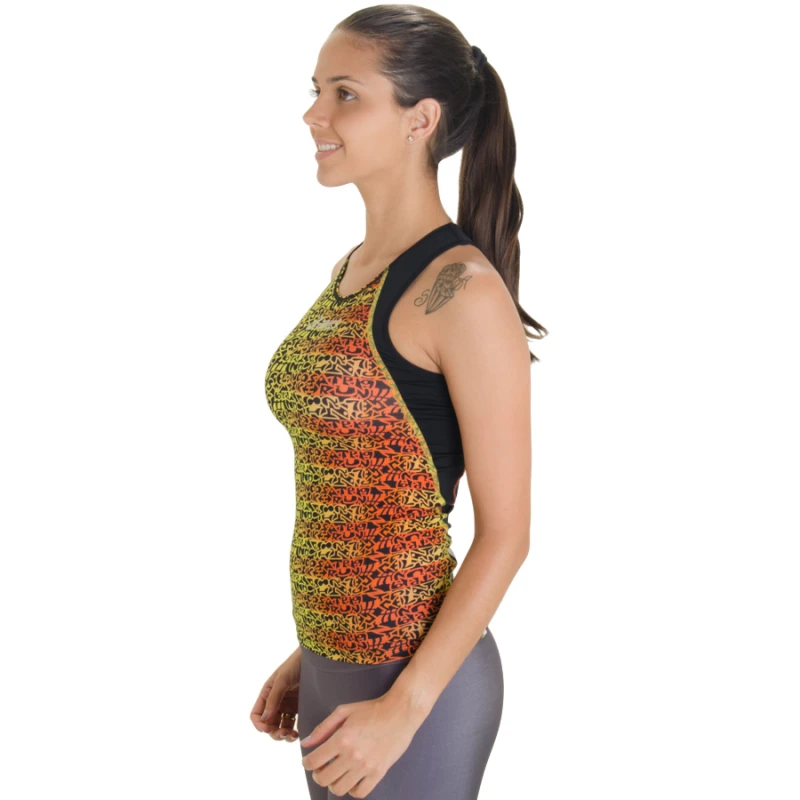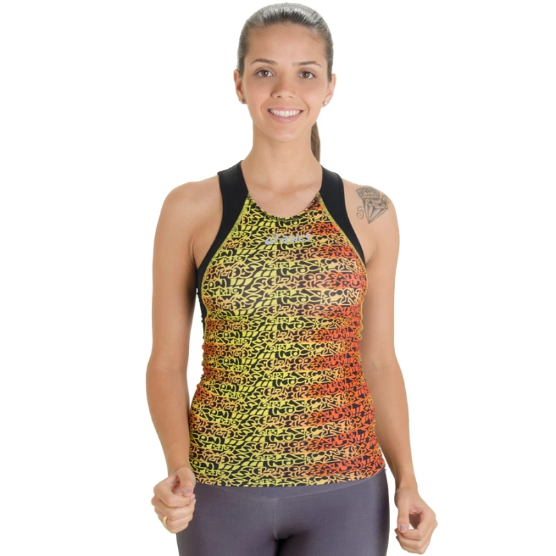 A Regata Asics Triathlon Noosa Tri Tank feminina vem confeccionada em 86% Poliamida e 14% Elastano.