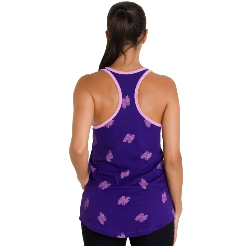 Medidas da modelo Tayse que veste a Regata Nike Loose Tank-N Allover feminina na cor: Roxo/Rosa