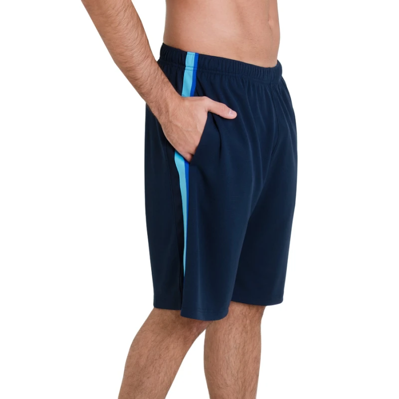 Medidas do modelo João que veste a Bermuda Nike Epic Knit na cor: Marinho/Azul celeste no tamanho: M
