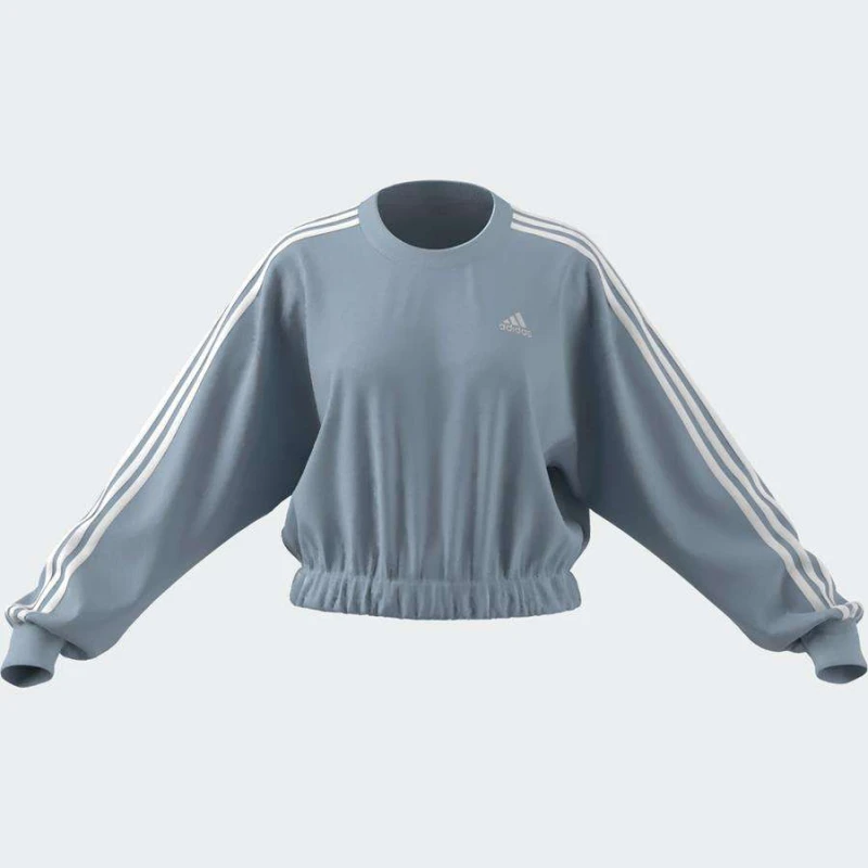 BLUSA ADIDAS MOLETOM CROPPED 3 STRIPES FEMININA - Azul celeste/branco