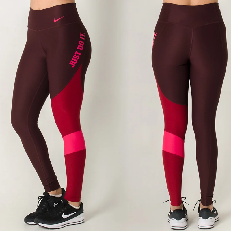 Medidas da modelo Jaqueline que veste a Calça Legging Nike Power Tight Team Feminina na cor: Bordo/Vermelho no tamanho: P