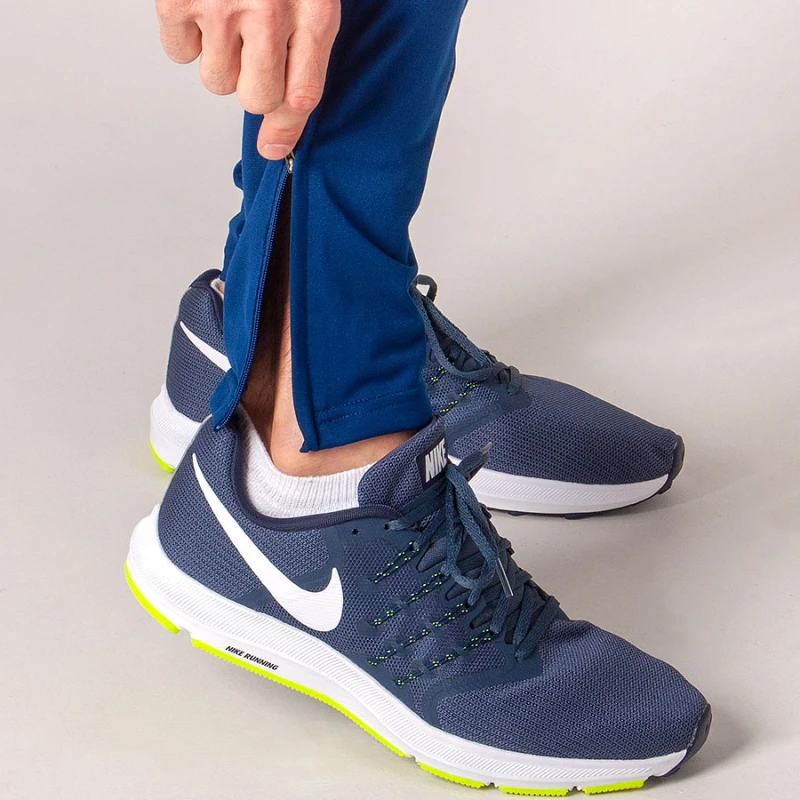 Zíperes na parte inferior das pernas facilitam a troca com as chuteiras calçadas.