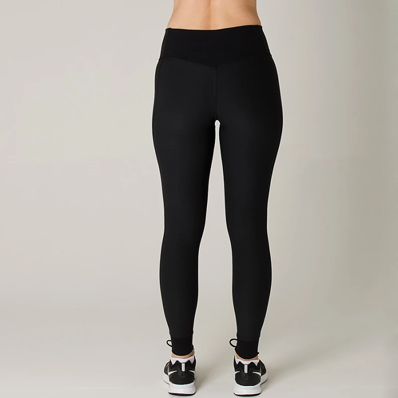 A calça possui cós com parte de trás reforçada para mais suporte.