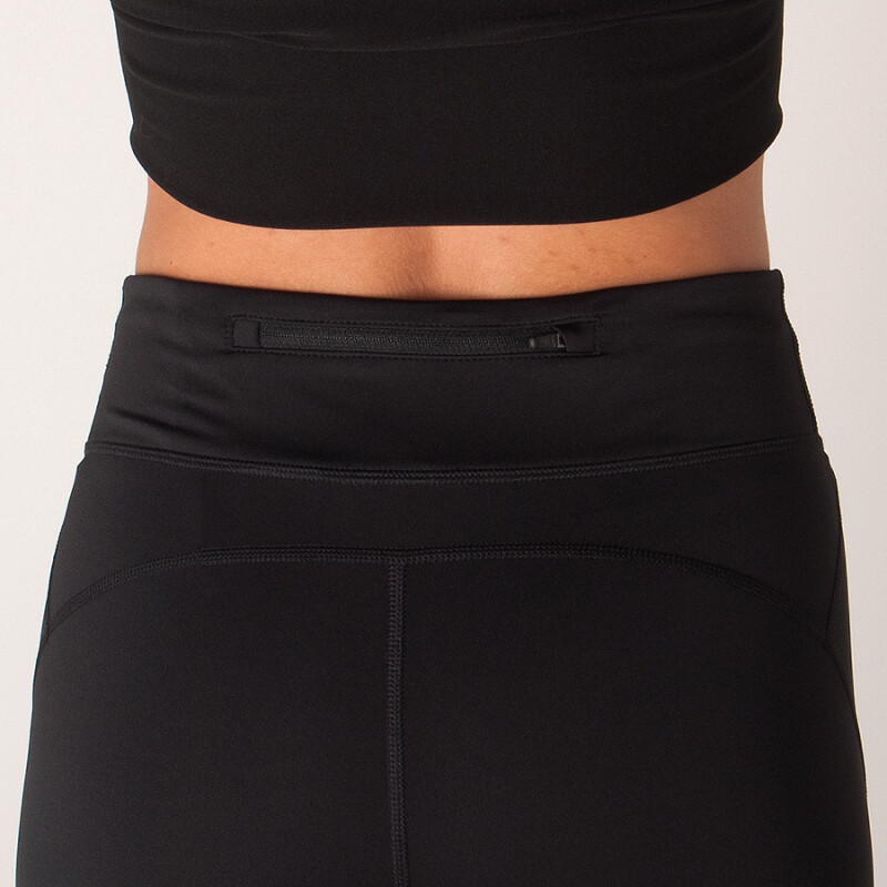 Bolso interno e bolso de zíper atrás armazenam o seu celular e outros itens essenciais.